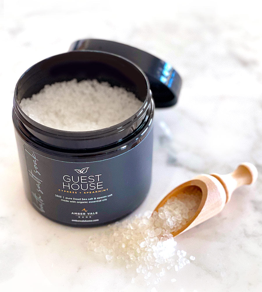 This curated bundle is for the spa enthusiast! Squared up with our Guest House scented candle and Bath Salt Soak, including our charming little bath salt scoop, this trio is sure to check all the boxes for an invigorating, relaxing soak! Our Guest House scent, Cypress + Spearmint, is extremely refreshing and relaxing, and with both the candle burning and your bath soak experience, this is going to be quite an elevated and satisfying experience!