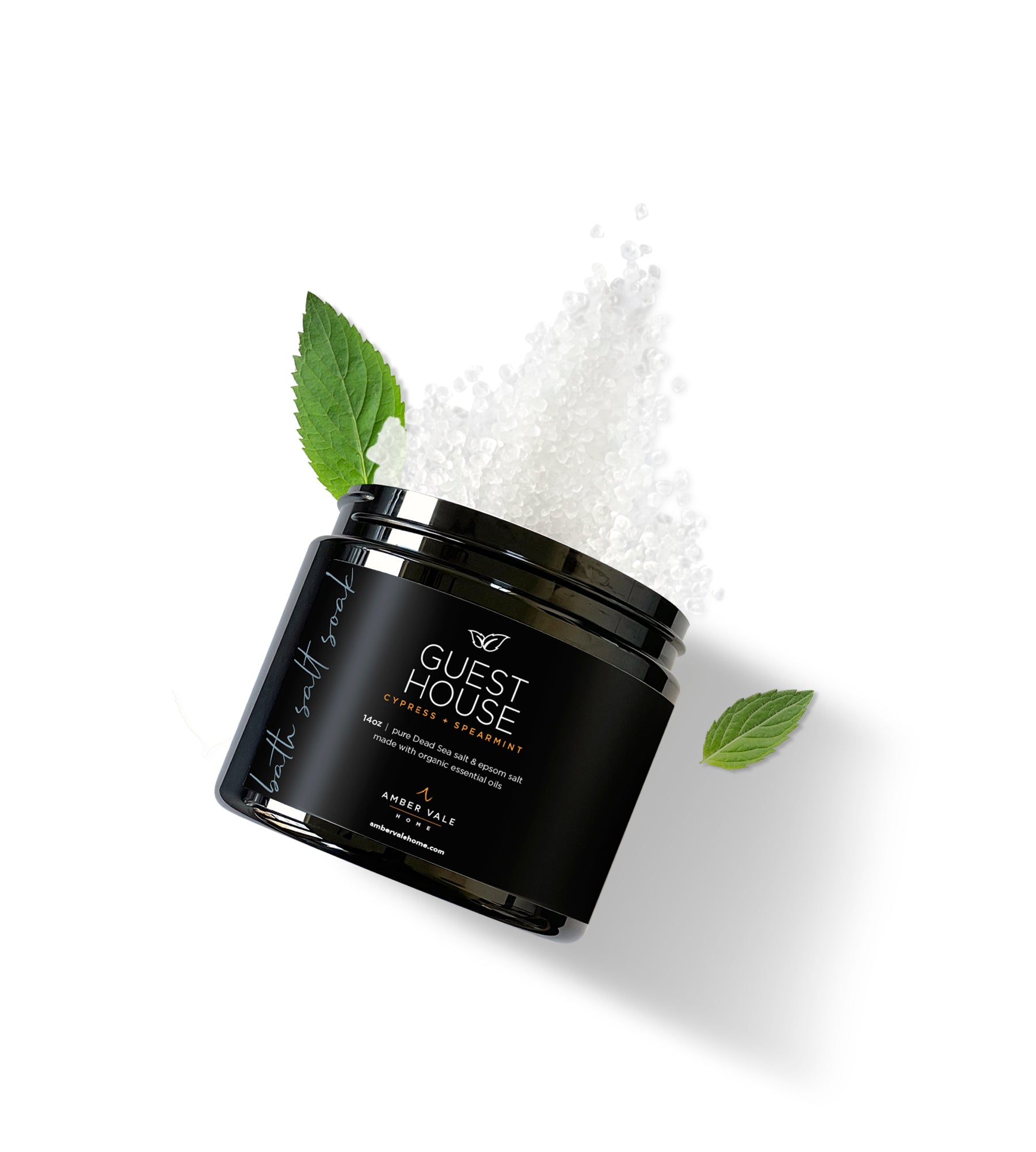 Enjoy one of our most popular scents of cypress + spearmint masterfully combined to create the fresh, clean notes of Guest House. This bundle contains not only our 16oz soy and coconut wax candle, but also our bath salt soak and hand soap filled with natural, organic ingredients. Awaken the relax inside of you and experience your home as if you were a guest.